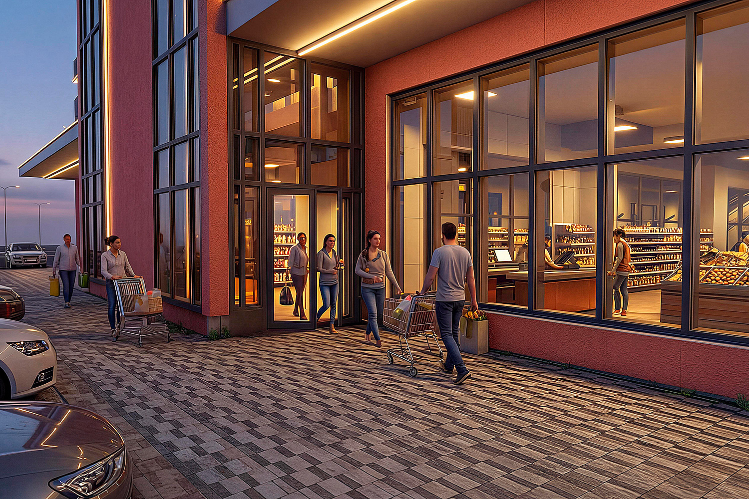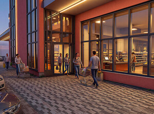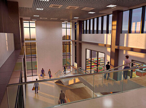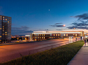 Торгово-развлекательный комплекс со встроенной библиотекой в мкр. «Солнечный» г.Красноярска. Здание является торговым пассажем, который соединяет пешеходную часть улицы 60 лет образования СССР и новый жилой комплекс «Аринский». Используемые цветовые решения с жилых домов вписывают здание ТРК в общую стилистику нового жилого комплекса. При размещении здания эффективно использован рельеф и каждый этаж имеет выходы на уровень земли. На первом и втором этажах располагаются магазины и библиотека, на третьем этаже дополнительно предусмотрен фудкорт. Траволаторы и лестницы располагаются в многосветном атриуме. Проект 2024-2026г.